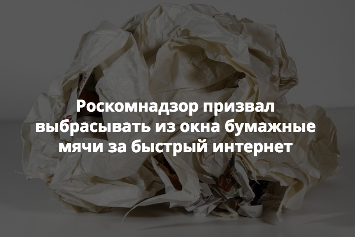 Роскомнадзор призвал пользователей поучаствовать в акции за быстрый и устойчивый интернет на стадионах, где будут проводить матчи ЧМ-2018, запустив из окна бумажные мячики в 19:00. Эта акция повторяет объявленный Telegram флешмоб за свободный интернет. Тогда участники запускали из окна бумажные самолетики в то же время.