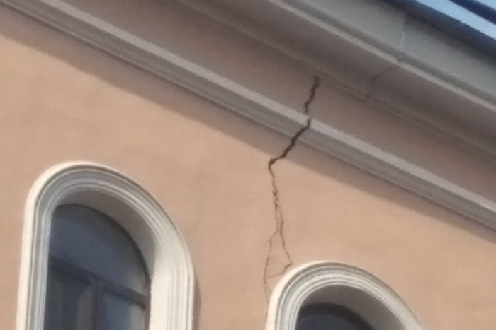 На историческом доходном доме на улице Александра Невского, 10 местные жители заметили крупную трещину, которая тянется от фундамента до крыши.