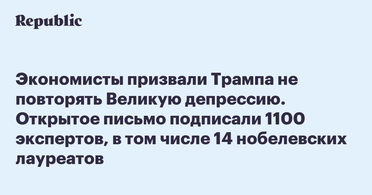 Экономисты призвали Трампа не повторять Великую депрессию. Открытое письмо подписали 1100 экспертов, в том числе 14 нобелевских лауреатов