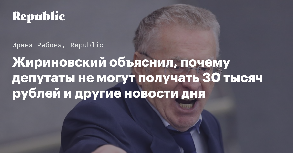 Жириновский объяснил, почему депутаты не могут получать 30 тысяч рублей, и другие новости дня