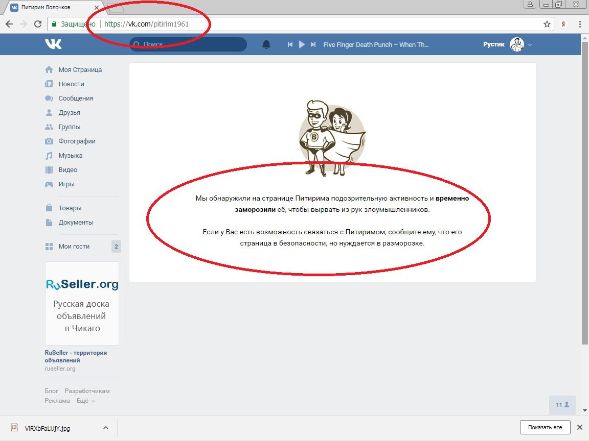 По непроверенным данным, страница была заблокирована из-за массовой рассылки с требованием перевести ему денег.