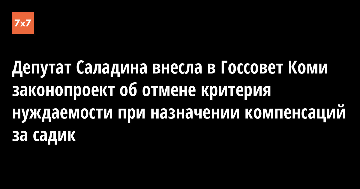 Депутат Государственного совета Коми справедливоросс Татьяна Саладина подготовила поправки в региональный закон «Об образовании» и внесла их на рассмотрение республиканского парламента. Законопроект предусматривает отказ от критерия нуждаемости при назначении компенсации родительской платы за детский садик, против которого в прошлом году протестовали в нескольких городах Коми. Пакет документов по депутатской инициативе стал доступен в базе Госсовета 3 мая.