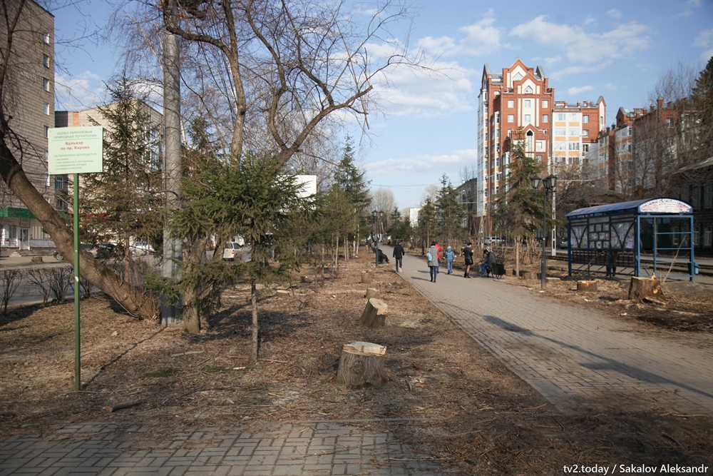 В рамках благоустройства в мэрии планируют переложить плитку на бульваре, установить новую садовую мебель, выровнять и восстановить газоны, и провести работы по озеленению. Снос деревьев нужен был для того, чтобы сформировать места для полноценной аллеи вдоль этого бульвара, сообщила Цветкова.