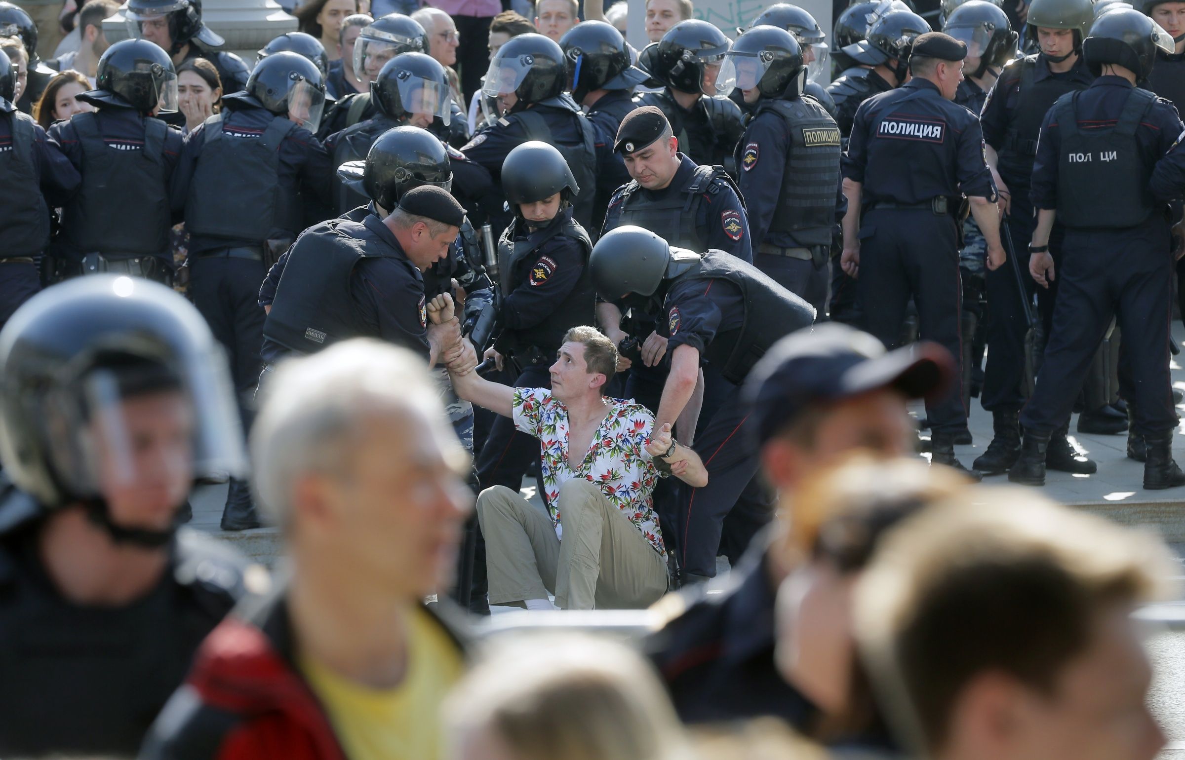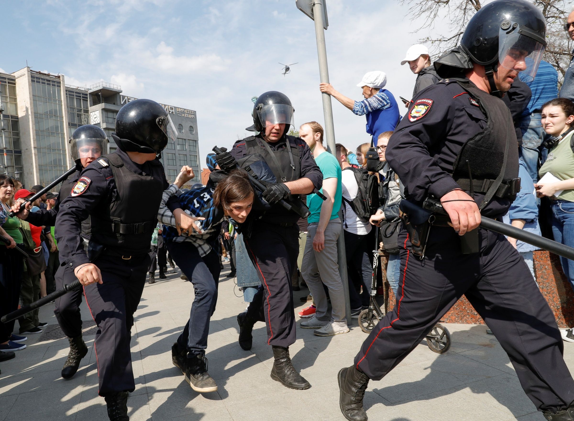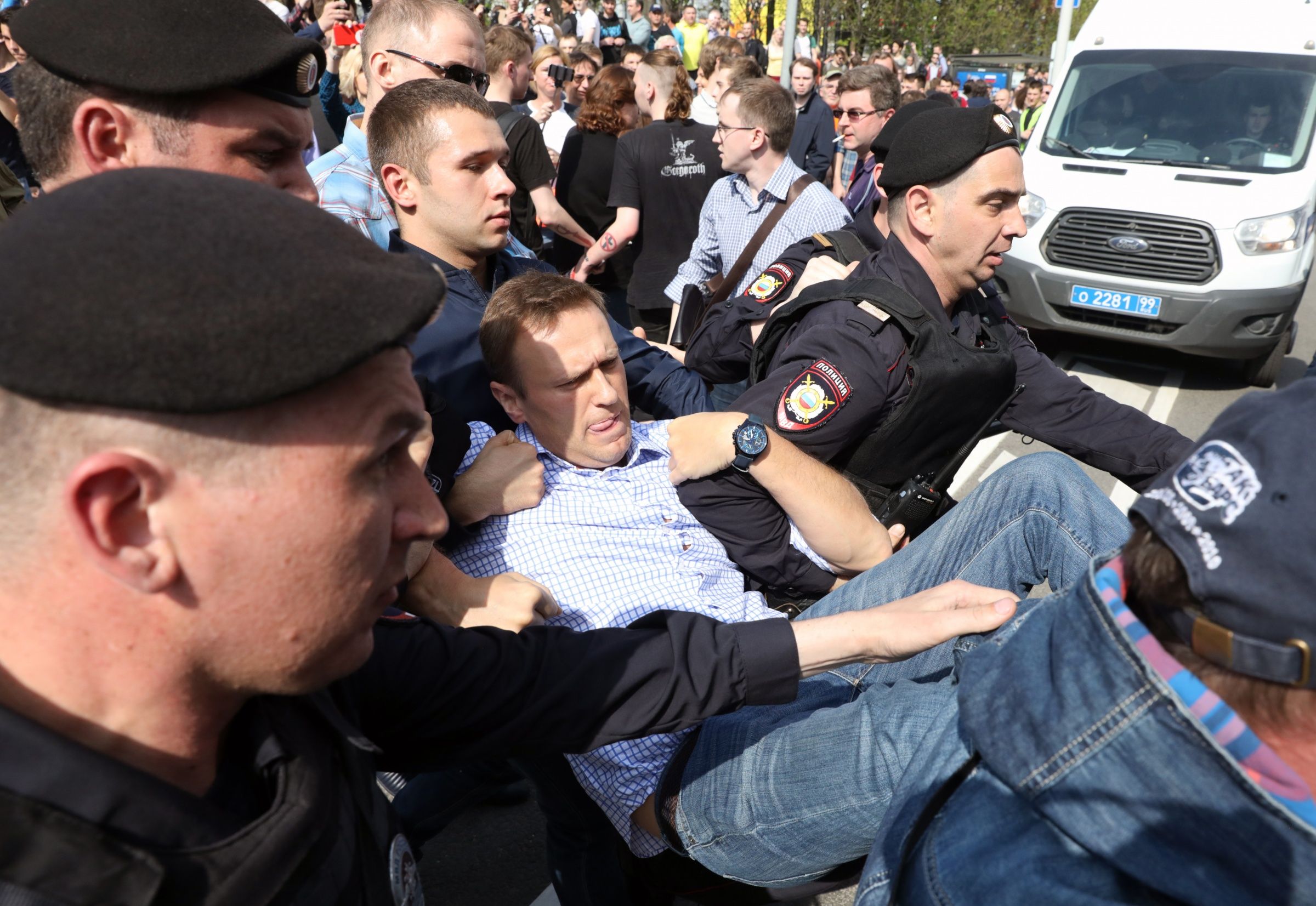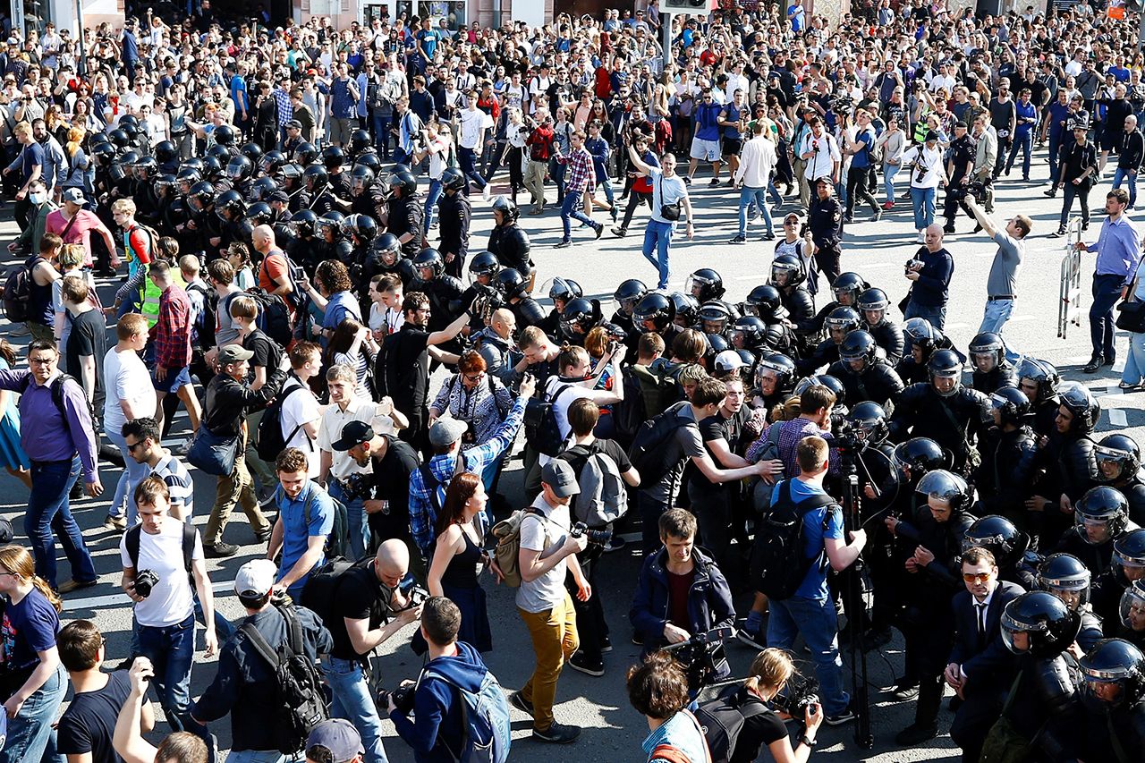 В Москве, как и во многих других городах России, 5 мая прошел митинг против четвертого срока Владимира Путина. Акция под названием «Он нам не царь» состоялась на Пушкинской площади и Тверской улице. Туда же пришли активисты прокремлевского движения НОД и люди в форме казаков, которые вступили в столкновения с протестующими. По последним данным, в Москве задержали более 700 человек.