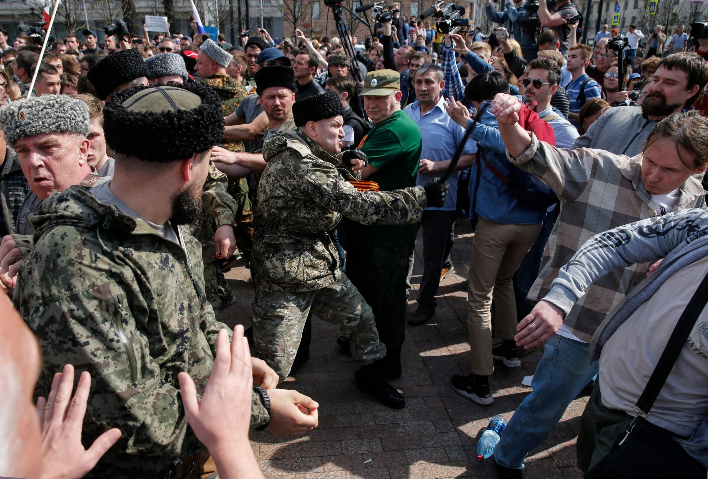 Столкновения на Пушкинской площади: люди в форме казаков, Навальный и НОД