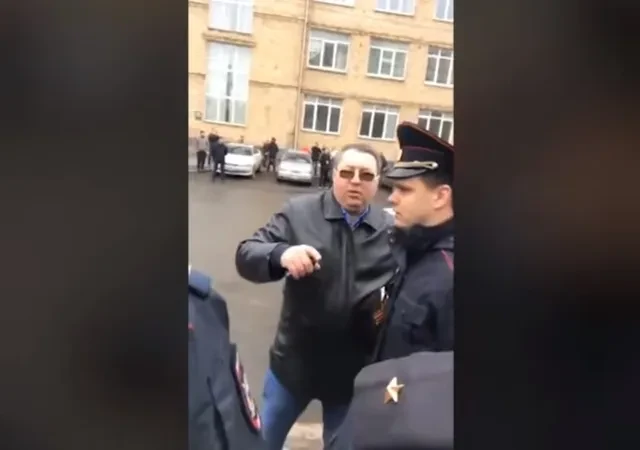 «Дядя» — это, судя по всему, начальник межмуниципального УМВД «Красноярское» Геннадий Березин. Он не местный, назначен сюда год назад (до этого — руководящие должности и Белгород, Ставрополье и Адыгея, Москва), и поэтому его мало кто из горожан еще знает. Он коротко командует, и Перекотия отводят в пазик к другим задержанным. Там 16 человек, не считая собаки — таксы известного борца за городскую экологию Натальи Подоляк. Трое из них, по словам Перекотия, избиты. Задержан редактор «7 канала» Яков Калинин.