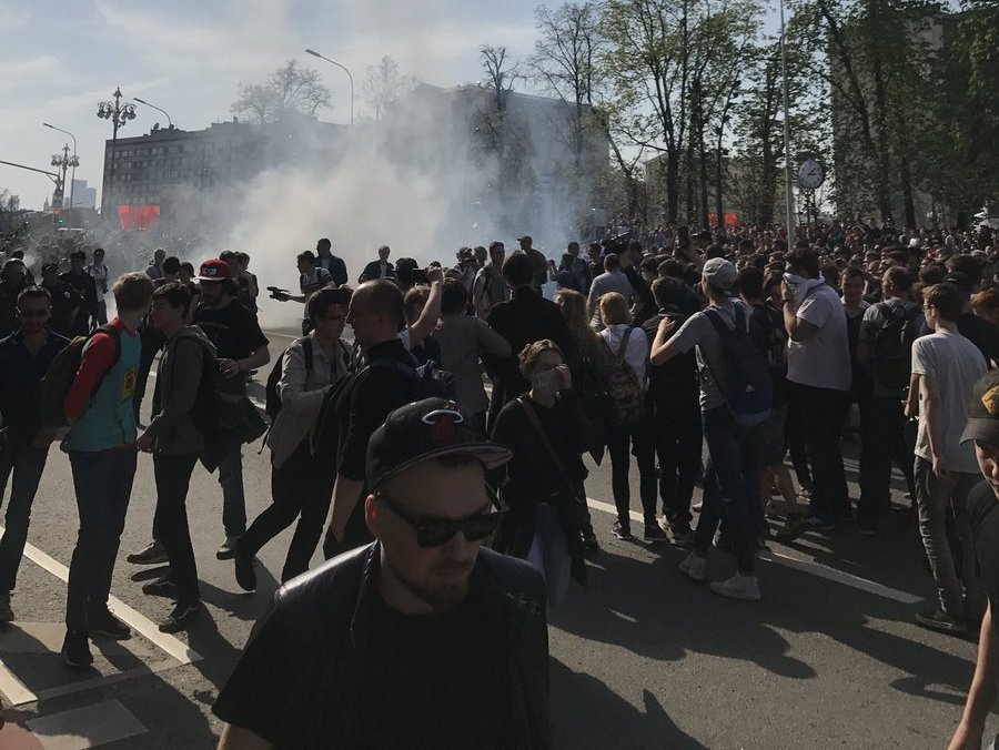 «Медуза» сообщает, что протестующие двинулись с Пушкинской площади в сторону Страстного бульвара, и начались столкновения.