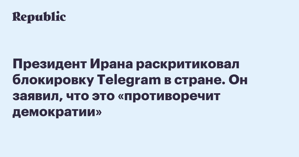 Президент Ирана раскритиковал блокировку Telegram в стране. Он заявил, что это «противоречит демократии»