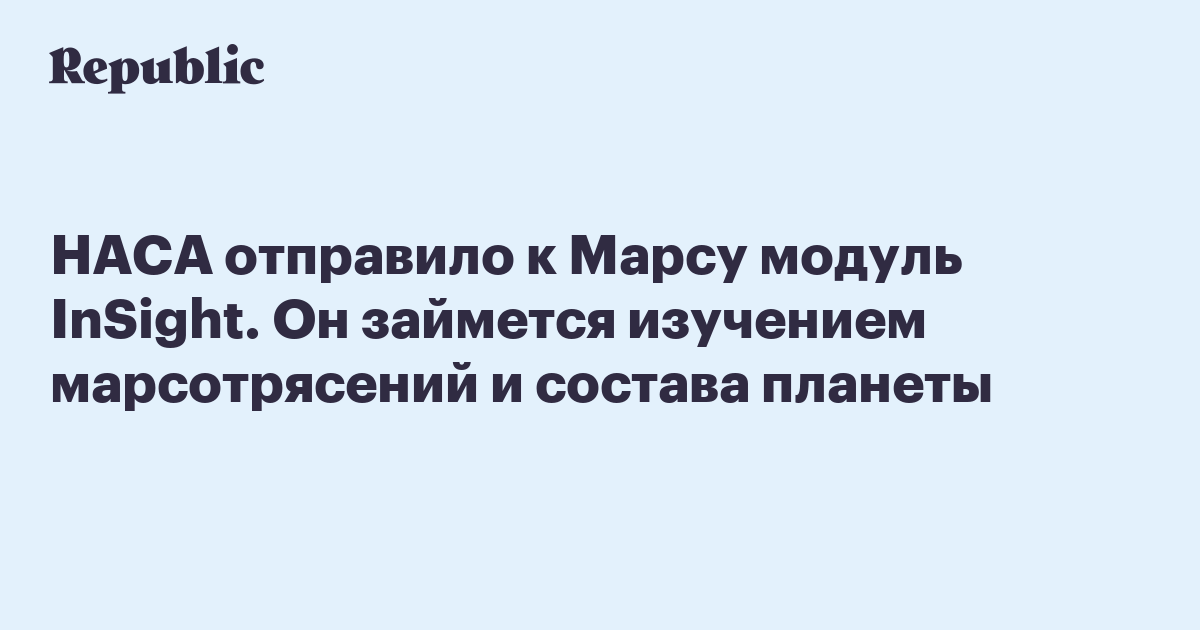 НАСА отправило на Марс первую миссию, которая займется изучением состава планеты. Ракета Atlas V, которая доставит исследовательский модуль InSight и спутниковую систему Mars Cube One, стартовала с военно-воздушной базы Ванденберг в Калифорнии. Онлайн-трансляция запуска велась на сайте НАСА.