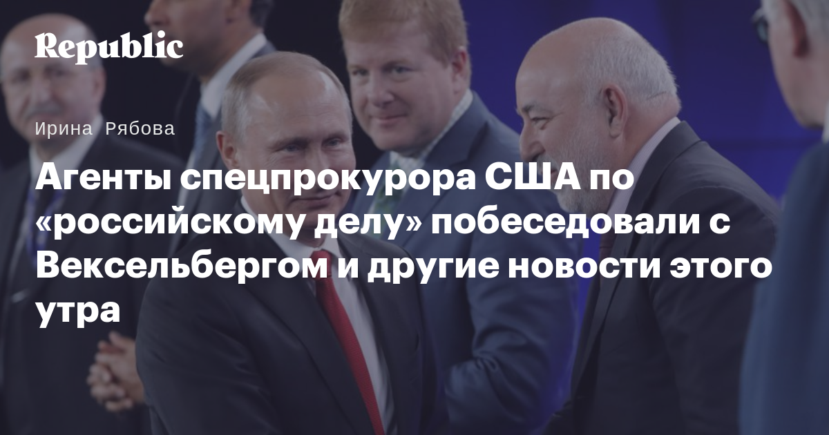 Агенты спецпрокурора США по «российскому делу» побеседовали с Вексельбергом и другие новости этого утра