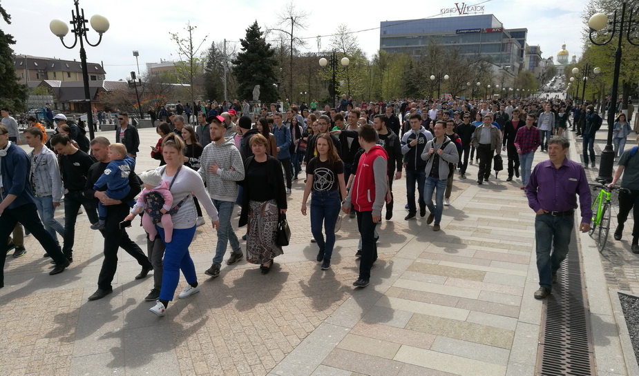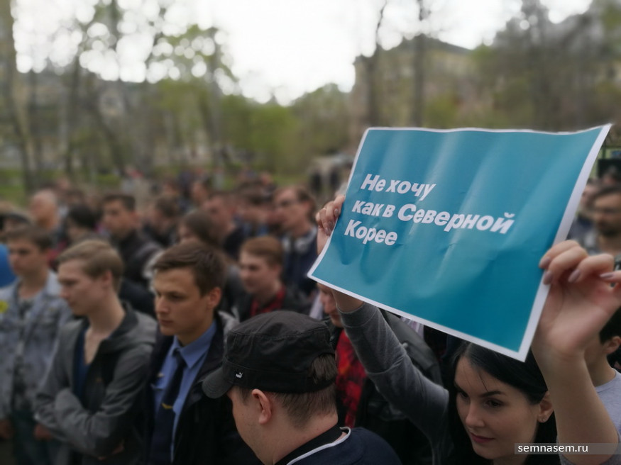 В Пензе 5 мая прошли митинг и шествие «Он нам не царь», инициированные штабом политика Алексея Навального. В акции, по оценке штаба, участвовали около 300 человек. Представители власти потребовали от митингующих покинуть площадку перед торговым центром «Высшая лига» на улице Московской, хотя, по словам организаторов, отказ в проведении митинга и шествия в этом месте им направили с нарушением сроков и процедуры. Корреспондент «7x7» следил за ходом акции.