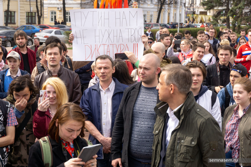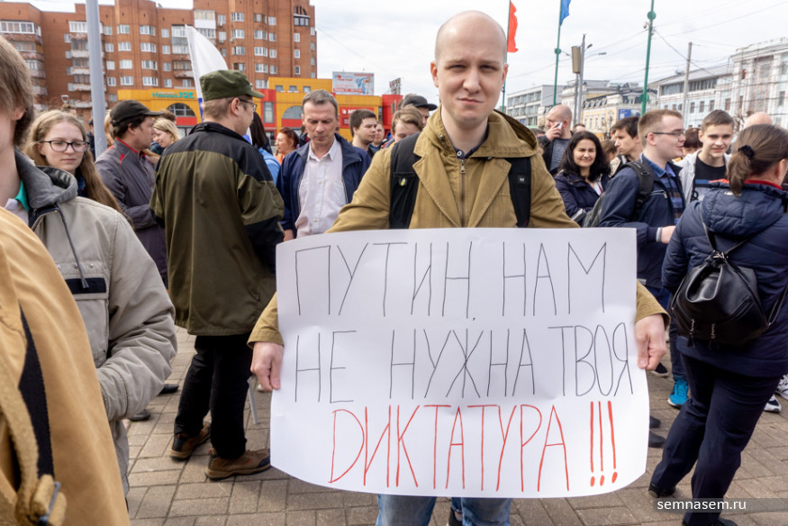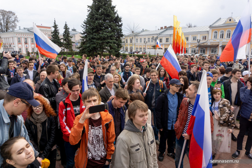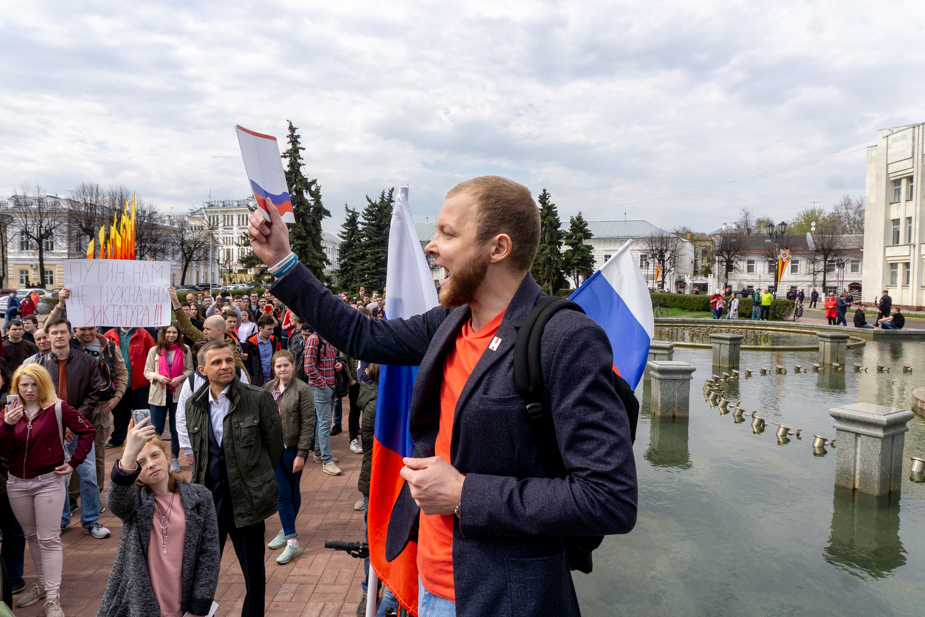 Ярославский штаб Алексея Навального 5 мая организовал шествие и митинг в рамках всероссийской протестной акции «Он нам не царь». Мероприятие не было согласовано с городской администрацией, но никого из демонстрантов не задержали. Фотокорреспондент «7x7» проследил за маршрутом протестующих.