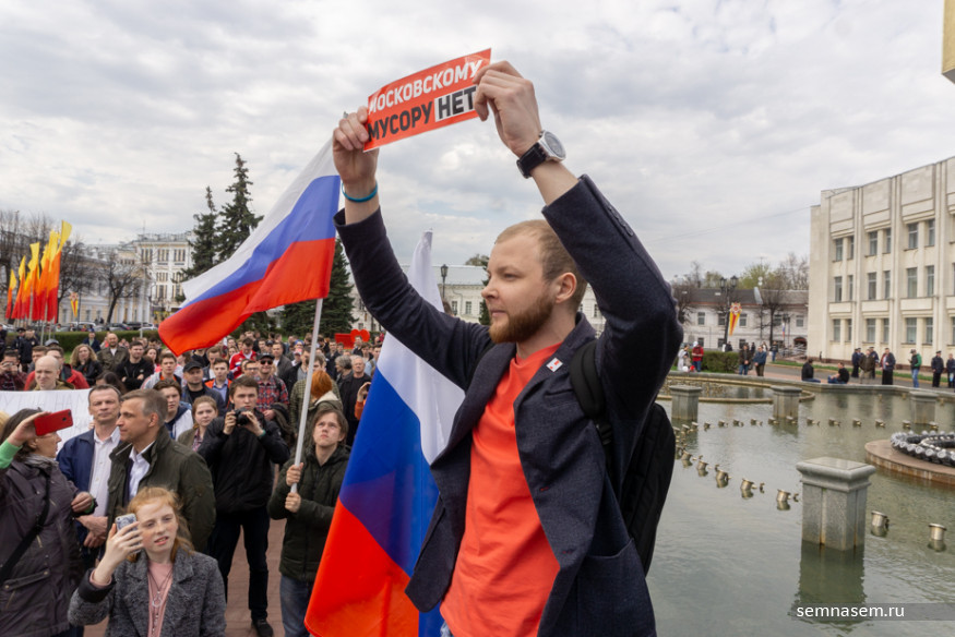 — Нас вместе с вами объединяет борьба против этой власти, которая заседает вот здесь в белом доме [показал на здание правительства]. Нас с вами объединила борьба против беззакония, которое началось с прихода «варягов» [управленцев из Москвы, которые приехали в Ярославль после назначения главой области Дмитрия Миронова] в ярославскую землю. Нас объединила борьба против московского мусора, который к нам прут десятками машин. У нас уже прошли два митинга, на которых мы давали власти время на то, чтобы прекратить ввоз мусора. Она не пошла нам на встречу, поэтому я предлагаю лозунг «Миронова — в отставку». Вы согласны?