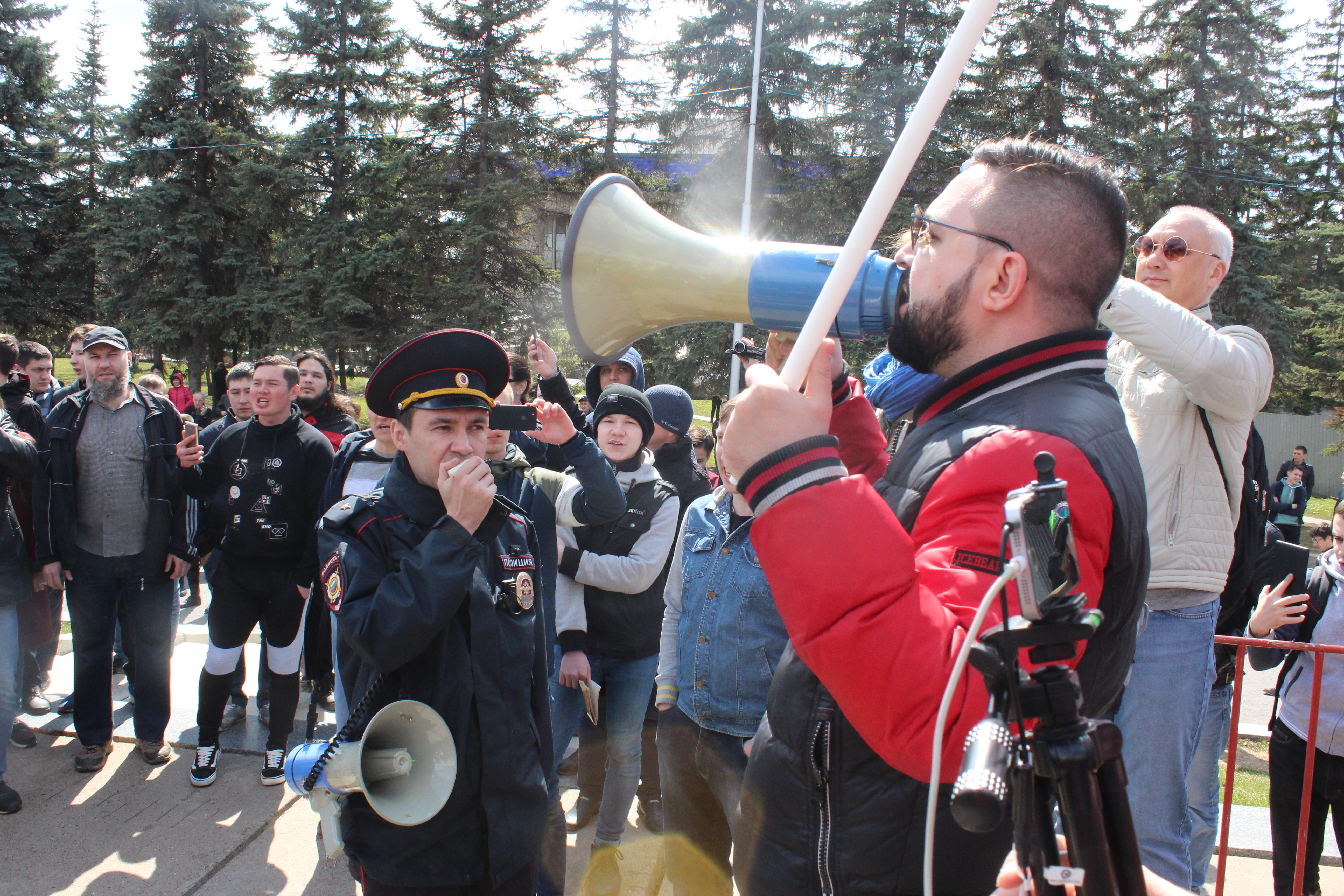 — Кто не знает — это майор Шангареев, познакомьтесь! Он будет первым подвергнут люстрации у нас в правоохранительной системе, — заявил ведущий митинга Федор Телин, когда полицейский вновь попытался прервать выступление очередного оратора.