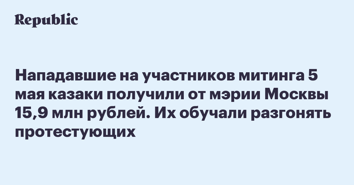 Нападавшие на участников митинга 5 мая казаки получили от мэрии Москвы 15,9 млн рублей. Их обучали разгонять протестующих