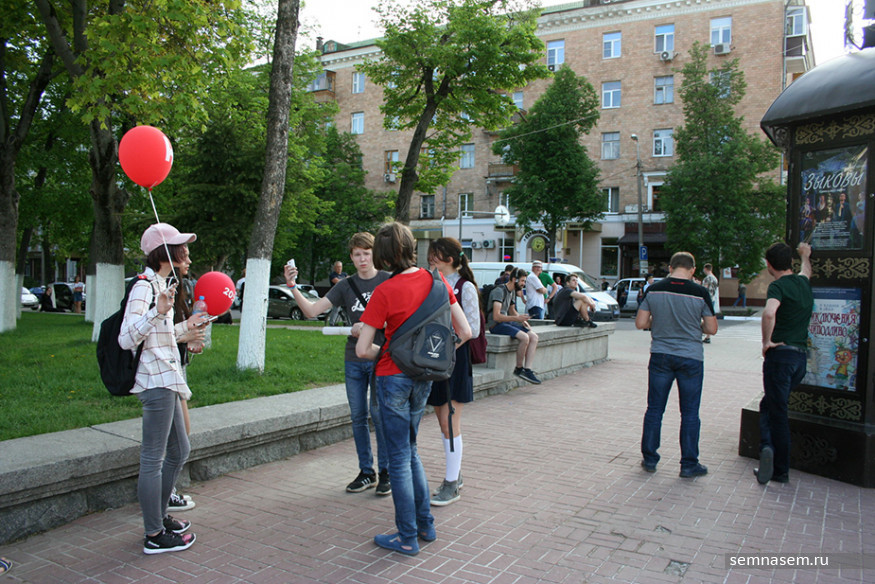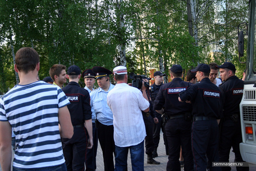 Организаторы надеялись, что полиция приедет в центр города, а сами они соберутся в другом месте. Несколько человек пришли на площадь, а затем разошлись по домам. Остальные поехали в парк Южный, взяв с собой портреты чиновников, президента России и патриарха.