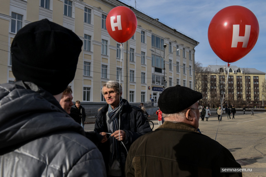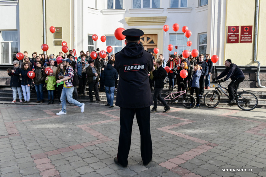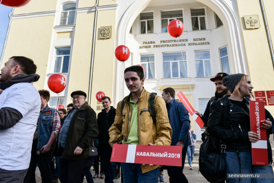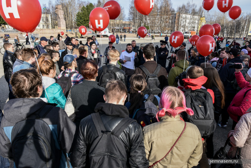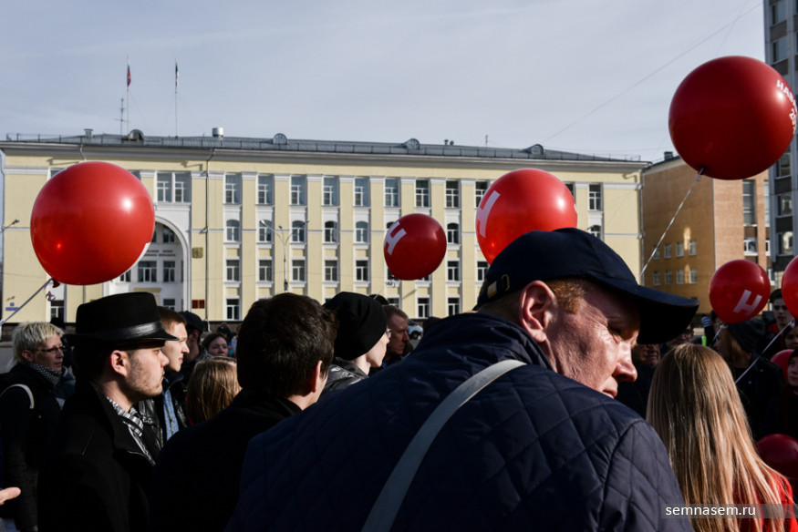 В Сыктывкаре 5 мая на Стефановской площади прошла массовая прогулка в поддержку акции политика Алексея Навального «Он нам не царь», приуроченной к инаугурации Владимира Путина. За ней наблюдал корреспондент «7x7».