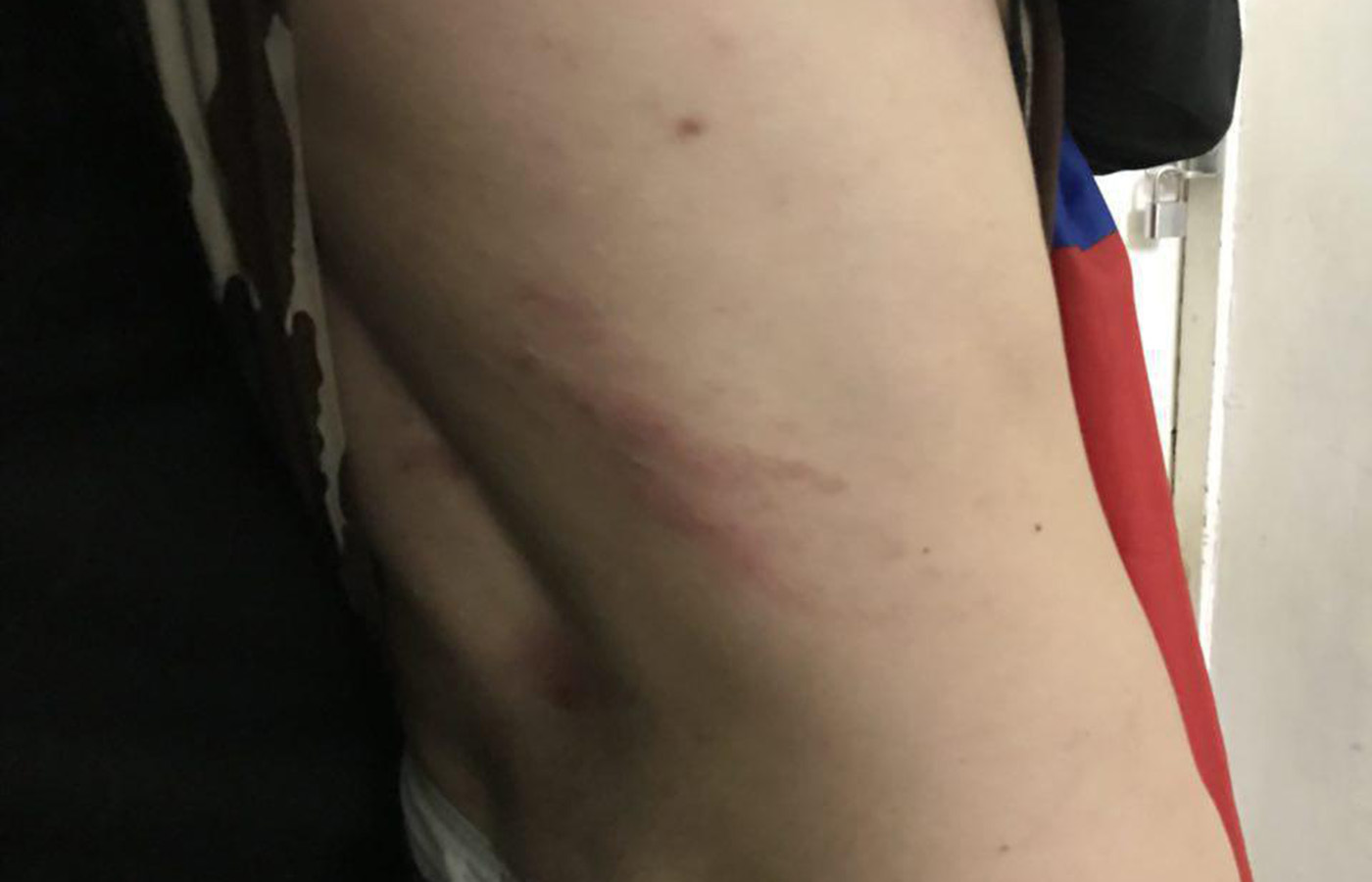 Те люди, которые меня задерживали, они меня чуть не задушили. Я просил вызвать скорую, они игнорировали. В самой машине полицейской меня держали за руку, давили на болевые точки. Сотрудник так пытался меня усмирить. Сопровождалось это соответствующим текстом, нецензурной бранью, с тоном лицемерия в мой адрес, что я никто.