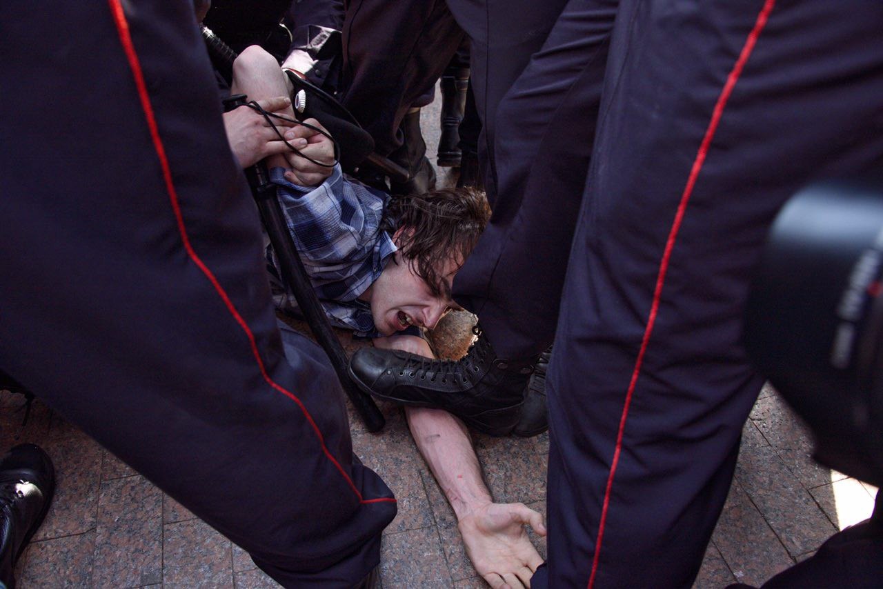 Как и шесть лет назад, протесты накануне инаугурации Владимира Путина сопровождались массовыми задержаниями и избиениями демонстрантов. Во время акции «Он нам не царь» 5 мая были задержаны 1600 человек в 27 городах России — многие из них пожаловались на полицейское насилие. Уполномоченный по правам человека Татьяна Москалькова уверяет, что не получала от москвичей никаких жалоб, наоборот, «впервые было отмечено очень корректное отношение полиции». «Медиазона» записала рассказы нескольких человек, для которых столкновение с подобным отношением сотрудников МВД и Нацгвардии обернулось телесными повреждениями.
