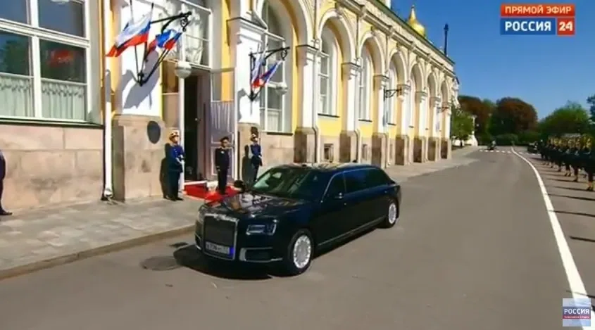 Путин прибыл на инаугурацию на автомобиле отечественного производства — на машине проекта «Кортеж» с номером В776УС77. Проектом занимается ФГУП «Центральный научно-исследовательский автомобильный и автомоторный институт» (НАМИ). В его рамках на единой модульной платформе в будущем планируют создать лимузин, внедорожник, седан и минивэн, предназначенные для первых лиц государства. Ранее глава государства использовал автомобили Mercedes.