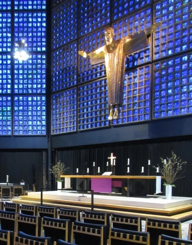 «The world was lost, but Christ is born: rejoice, rejoice, o Christendom!» The world is always lost… I'm standing inside the new Kaiser Wilhelm Church which was built on the foundation of the old one. And Christ with huge pierced palms is floating in the air over me.