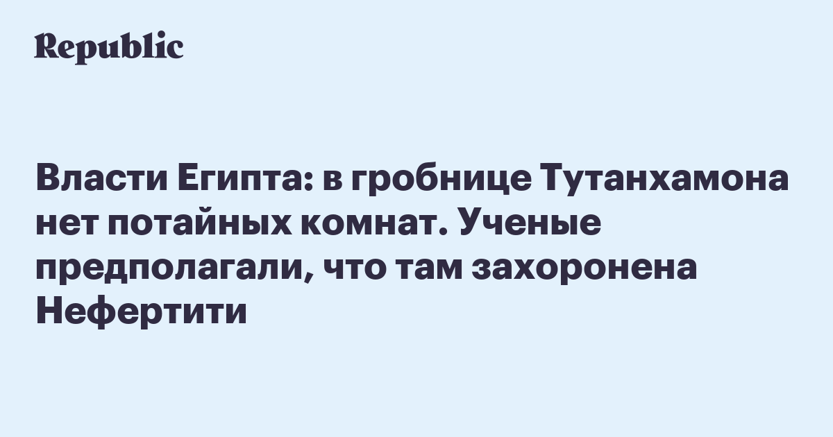 Власти Египта: в гробнице Тутанхамона нет потайных комнат. Ученые предполагали, что там захоронена Нефертити