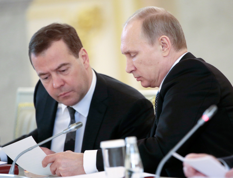Премьер-министр РФ Дмитрий Медведев и президент России Владимир Путин.