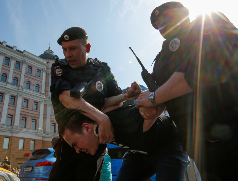 Задержание на митинге 5 мая в Москве. Фото: Сергей Карпухин, Reuters