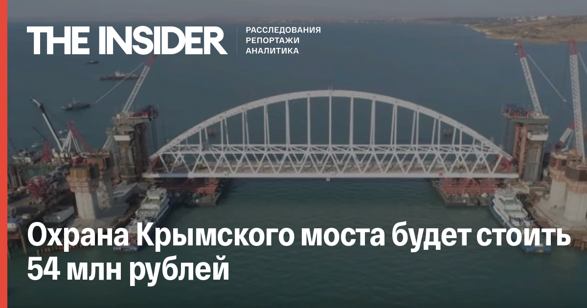 Охрана Крымского моста обойдется федеральному бюджету в 53,9 миллиона рублей. Это следует из тендера, размещенного на сайте госзакупок, пишет РБК.