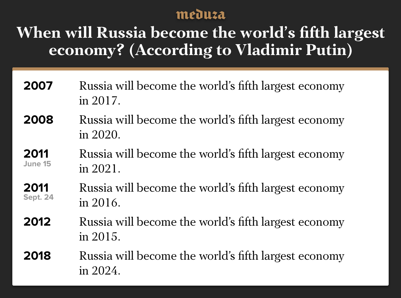 When will Russia become the world's fifth biggest economy? Don't ask Vladimir Putin.