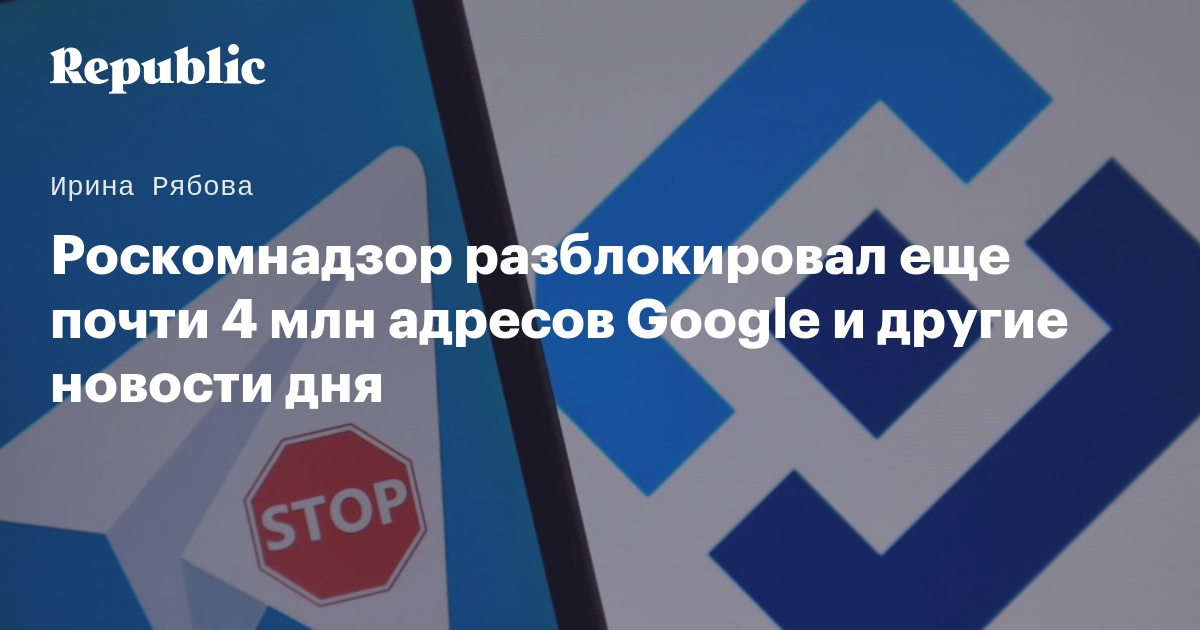 Роскомнадзор разблокировал еще почти 4 млн адресов Google и другие новости дня