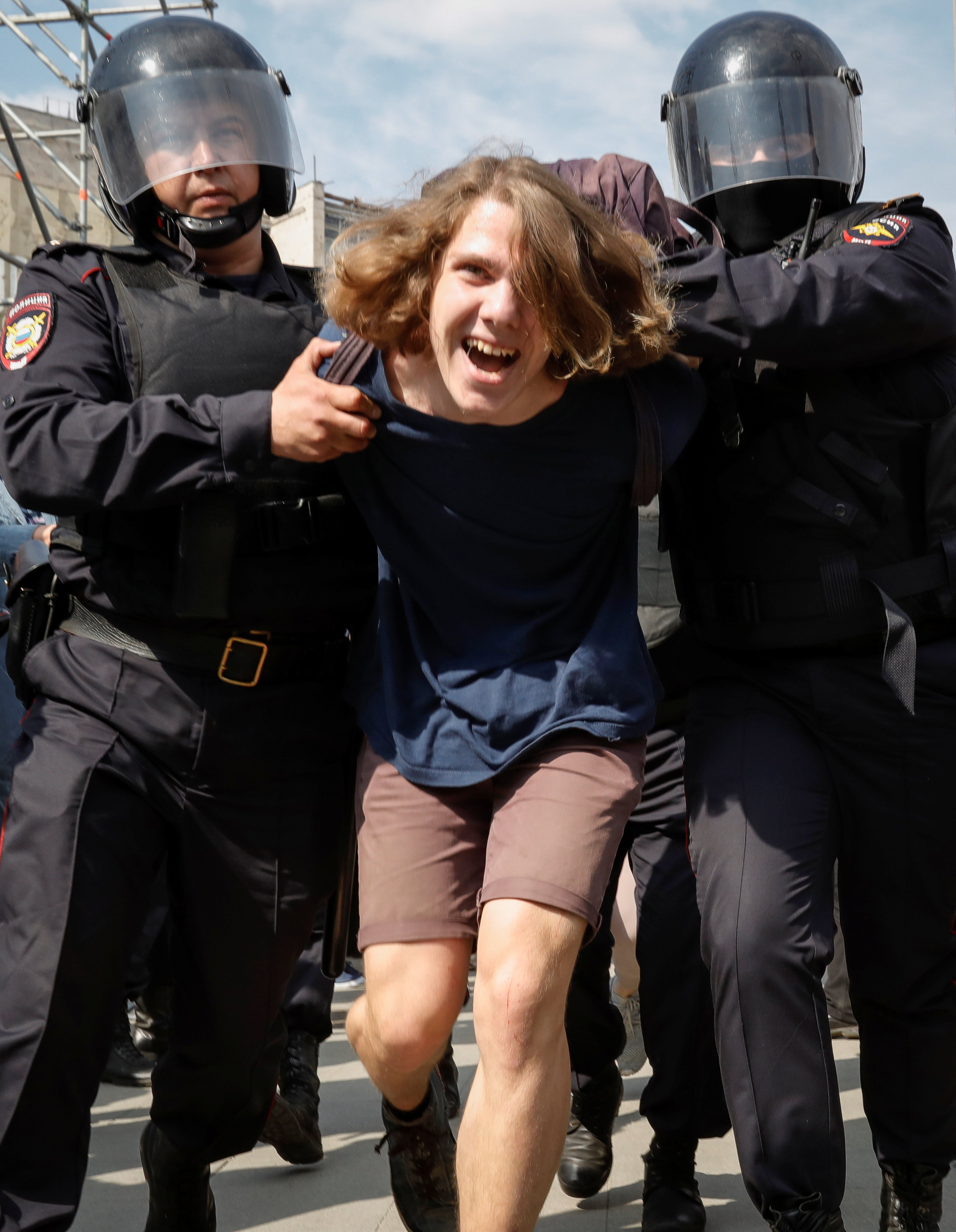 Почти 1600 человек задержаны по всей России 5 мая на акциях “Он нам не царь”. Протестующих избивали полицейские. В Москве людей, пришедших на митинг, били нагайками “казаки”. Участники мирной акции, в том числе несовершеннолетние, получили разного рода травмы. В Красноярске преподавателя физкультуры одного из местных вузов Наталью Подоляк задержали за то, что она пыталась оказать помощь человеку, потерявшему сознание во время задержания.