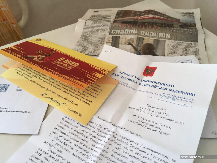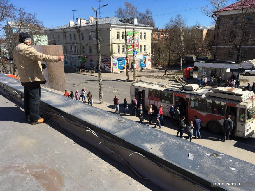 Акция протеста против неисполнения решения суда о сносе незаконной пристройки к магазину «Невский пассаж» состоялась в Петрозаводске 9 мая. Активист Алексей Трунов простоял на крыше пристройки с плакатом «Ветерана выжили из квартиры. С победой тебя, Парфенчиков» полтора часа, после чего полицейские сняли его с крыши.