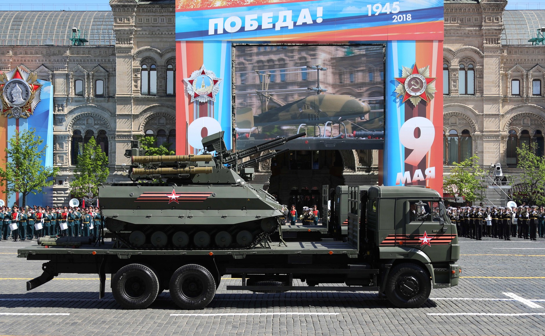 - В числе новинок парада — зенитный ракетный комплекс «Тор-М2» и боевая машина огневой поддержки «Терминатор».