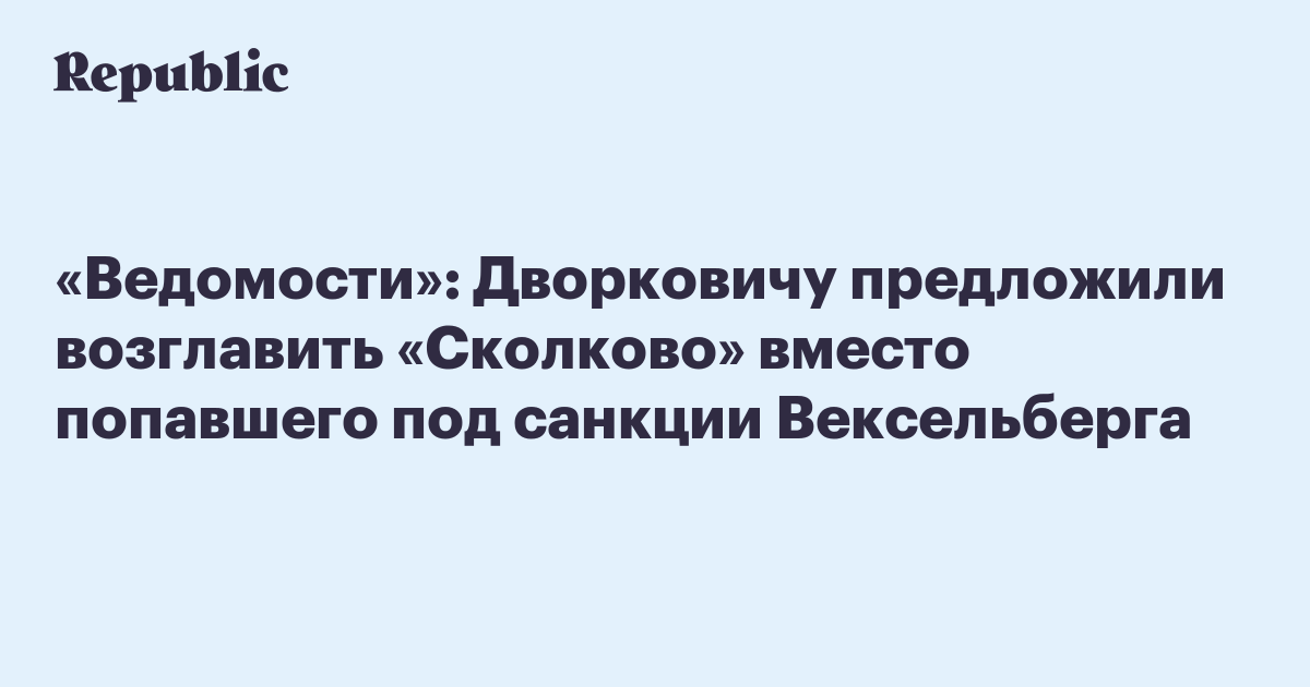 «Ведомости»: Дворковичу предложили возглавить «Сколково» вместо попавшего под санкции Вексельберга