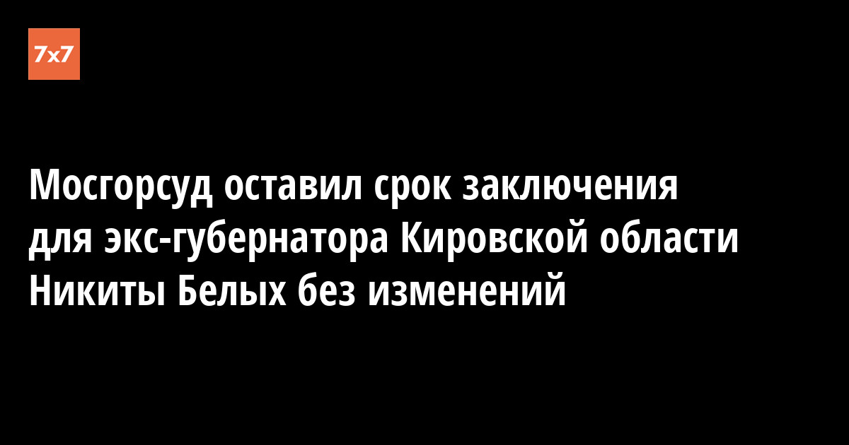 Судебная коллегия Московского городского суда 10 мая оставила без изменений срок заключения бывшему губернатору Кировской области Никите Белых, передает корреспондент «7x7» из зала суда. Ранее Пресненский суд Москвы приговорил экс-чиновника к восьми годам колонии строгого режима и 48 млн руб. штрафа.