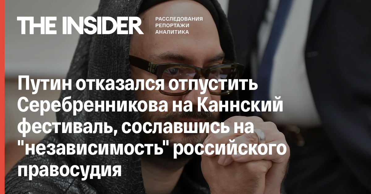 Путин отказался отпустить Серебренникова на Каннский фестиваль, сославшись на "независимость" российского правосудия