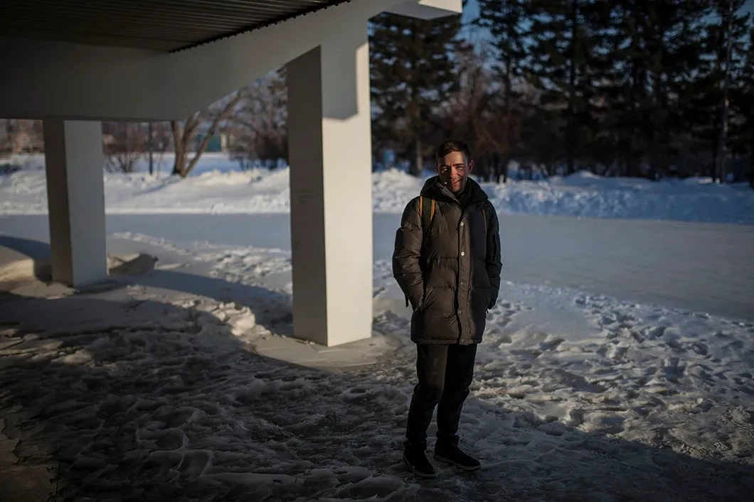 Служебная темно-синяя синтепоновая куртка скрывает его подтянутое тело, обтягивающий свитер, наоборот, подчеркивает. Дмитрий просит не называть его настоящего имени и не фотографировать: «Меня в Иркутске даже с затылка узнают».