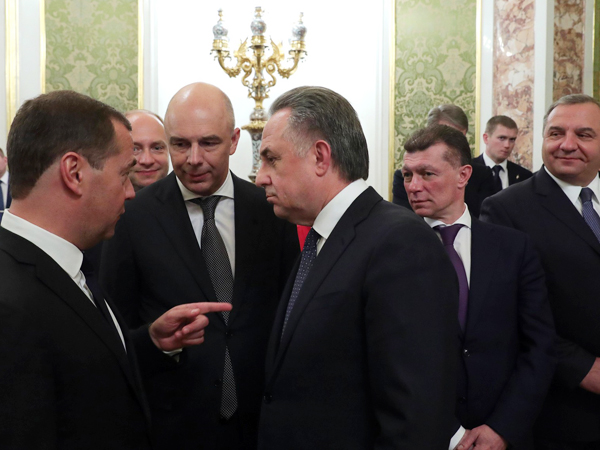 Перед началом встречи с членами Правительства kremlin.ru Правительство 2012 года – это правительство карт-бланша (по крайней мере, частичного), который был дан новому премьеру в обмен на отказ от президентских амбиций. Сейчас же мы имеем дело с увязыванием интересов большого количества людей и групп, заинтересованных в той или иной персоналии, в том или ином векторе развития некоей конкретной отрасли или отраслей. Поэтому можно говорить о том, что нынешнее правительство, при всей его гипотетической монолитности, должно быть наиболее дробным и разношерстным.