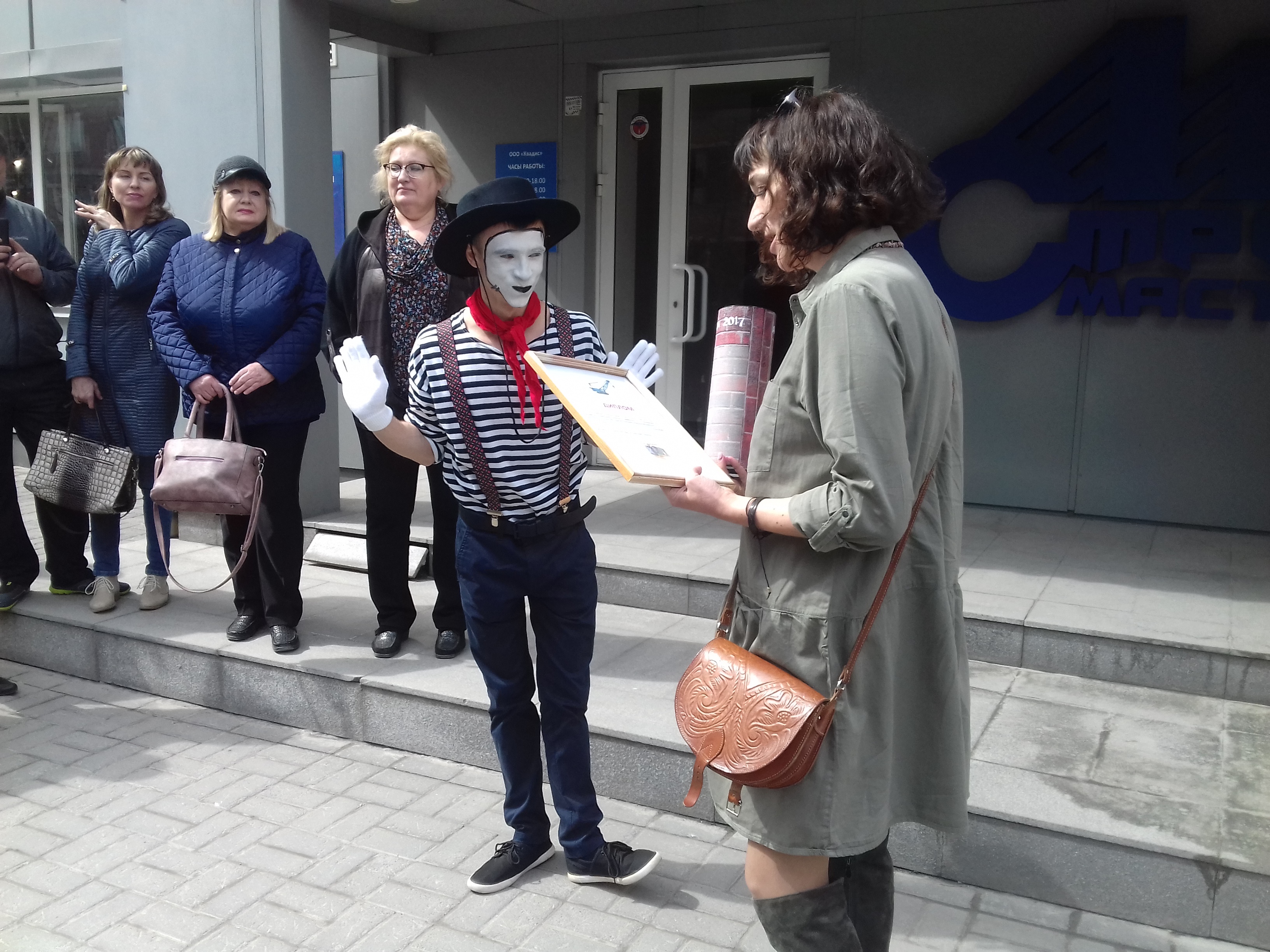 Новосибирские дольщики, купившие квартиры в жилом комплексе, который возводит компания “Строймастер”, решили вручить ее соучредителю народную награду “Антистроитель года”. Бизнесмену и депутату Законодательного собрания области Евгению Коновалову хотели подарить самодельный кубок и диплом, закрепляющий за ним это звание. Церемонию награждения инициативная группа провела на крыльце офиса строительной фирмы. Поскольку предприниматель к инвесторам так и не вышел, его роль исполнил специально приглашенный мим. Таким образом люди выразили свое недовольство затянувшейся стройкой.