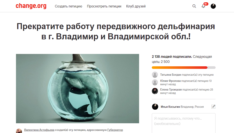 Несколько дней назад в сети появилась петиция, в которой жители области потребовали прекратить работу передвижного дельфинария во Владимире.