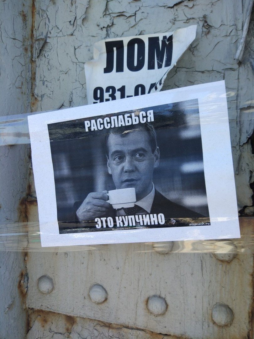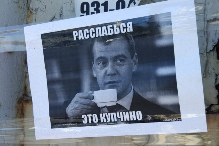 В частности авторы плакатов обращаются к премьер-министру РФ Дмитрию Медведеву, который жил на улице Белы Куна.