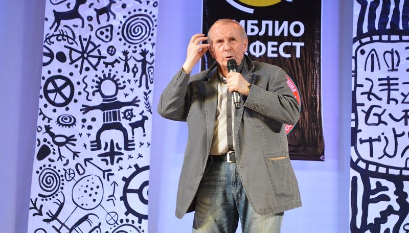 Во вступлении он поблагодарил библиотекарей за их работу (фестиваль в этом году был посвящён им) и поведал собравшимся о том, как постоянно искусственно изменяется история, в том числе и история литературы. Именно в этом писатель видит причину происходящего сегодня:
