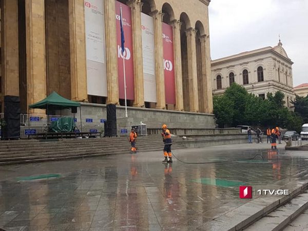 Площадь перед парламентом в Тбилиси утром 13 мая Фото: 1tv.ge Накануне вечером к зданию парламента в центре Тбилиси вышли тысячи молодых людей, выступавщих против жесткого рейда полиции по тбилисским клубам. В ходе антинаркотического рейда полицейские задержали посетителей двух крупных ночных клубов «Басиани» и «Галери». Это произошло в ночь на 12 мая.