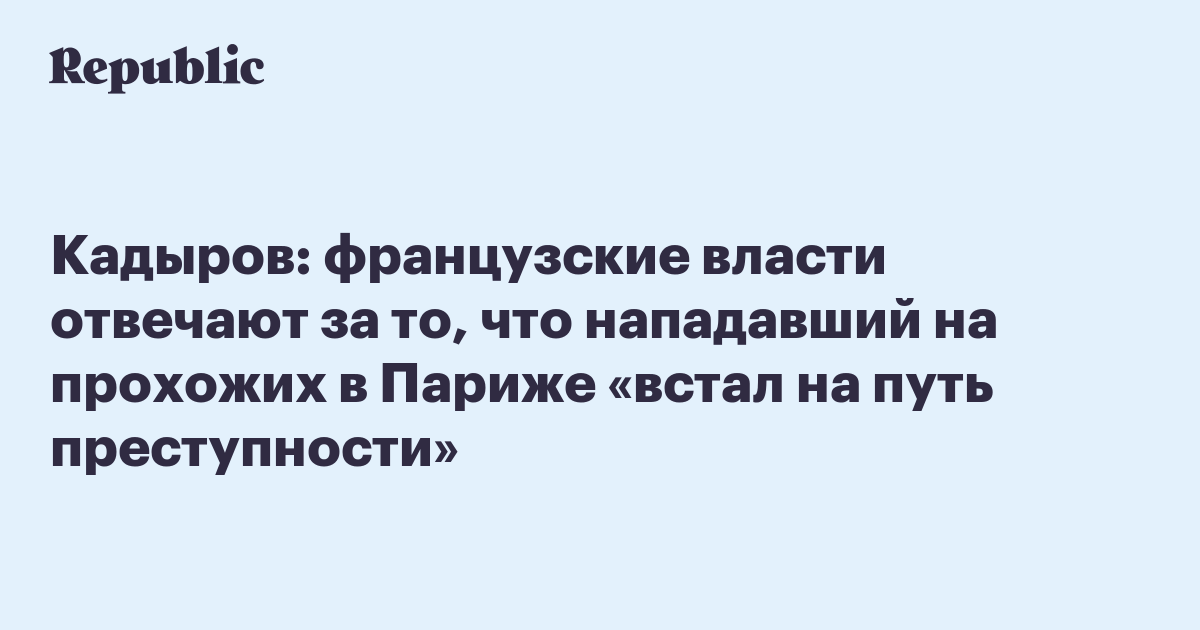 Кадыров: французские власти отвечают за то, что нападавший на прохожих в Париже «встал на путь преступности»