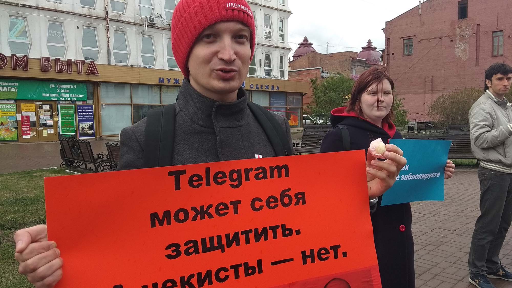В Иркутске 13 мая на пикет "За свободный интернет. Против блокировки мессенджера "Телеграм" вышли шесть активистов: три представителя партии "Яблоко" и три сторонника оппозиционера Алексея Навального. Проходившие мимо последователи Кришны поддержали протестующих и раздали им конфеты, "заряженные на свободный интернет".