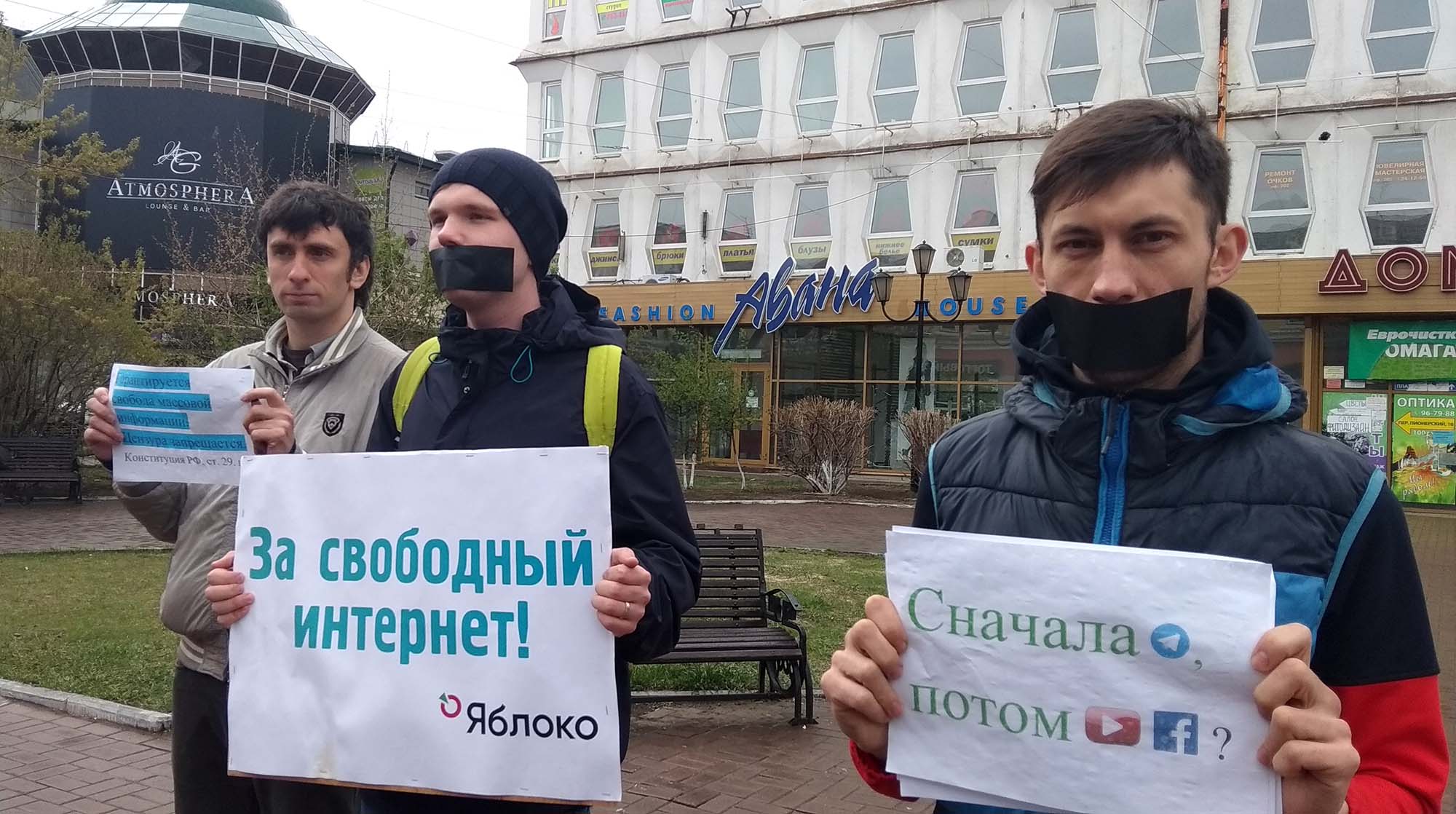 В конце апреля и начале мая волонтеры штаба Алексея Навального в Иркутске провели не менее 20 одиночных пикетов. Акции протеста были и в людных местах Иркутска, а также около здания регионального Роскомнадзора. Как сообщила "Сибирь.Реалиям" волонтер штаба Александра Шинкарева, к ними подходил руководитель регионального Роскомнадзора Сергей Костылов, он представился Николаем и предложил одной из пикетчиц работу в офисе, но девушка отказалась. Прошедшие одиночные акции запомнились участникам также тем, что полицейские ходили с рулеткой и мерили расстояние между пикетчиками. Нарушений не зафиксировали.