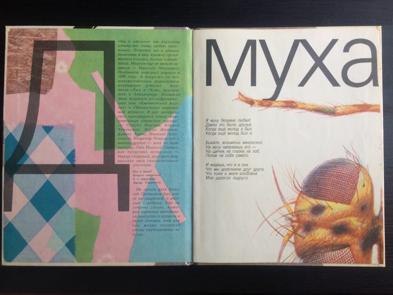 В начале 1990-х денег на книгоиздание у страны не стало. Когда мне было десять, отец делал детскую книжку «Дорогая муха!» со стихами Николая Олейникова буквально у себя дома — в издательстве не было даже инструментов. Помню, как мы гонялись на балконе за мухой пожирнее, потом ее надо было аккуратно убить, чтобы не помять и не расплющить (это была моя задача), потом он помещал ее под микроскоп и срисовывал в большом размере, и это становилось книжной иллюстрацией. Книжка есть у меня до сих пор, напечатанная на ужасной бумаге — другой в 1991 году уже не водилось. А скоро и такой работы у отца не стало.