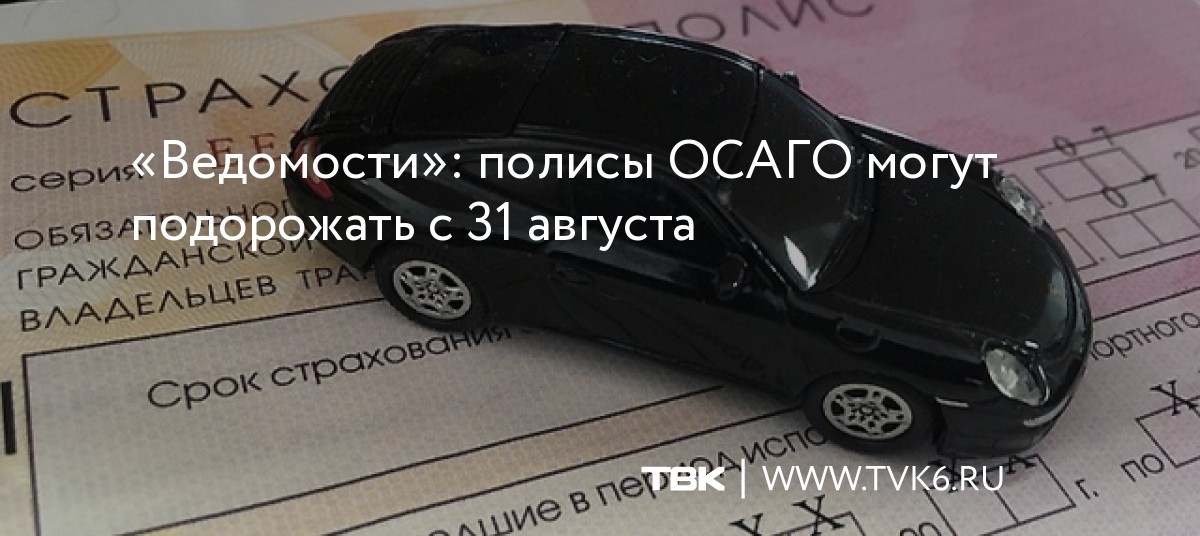 «Ведомости»: полисы ОСАГО могут подорожать с 31 августа