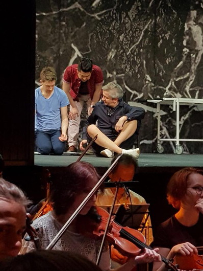 Это с одной стороны. С другой стороны, я отчетливо понял в процессе репетиций, что концертный характер, который имеет оратория, — это что-то очень существенное, это ее внутренний скелет. Его практически невозможно сломать и вряд ли нужно. Я понял, что музыкальная структура очень важна. Повторы в ариях, на которых все построено, являются не тем, что надо ломать, а тем, что надо использовать. A-B и снова A — это не просто структура, в ней есть очень важный эмоциональный момент, он не бессмысленный, он не является чистой формой. Форма несет определенную энергетическую и эмоциональную нагрузку, которую надо вскрыть. Я осознал для себя это как некую, ну, не гипнотическую, но вдалбливающую монотонную систему. Немножко проповедническую. Восточную или христианскую в равной степени. Мы здесь ввели один восточный инструмент — потому что сразу была идея такого восточного медитативного вдавливания одной и той же мысли. Мысли про смерть в данном случае.
